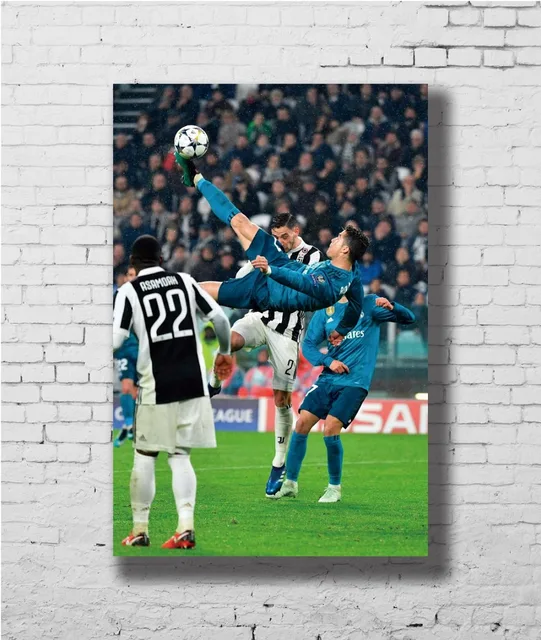 Us 4 89 Cristiano Ronaldo Bicycle Kick Real Madrid Vs Juventus Wall Sticker Home Decoration Silk Art Poster In Painting Calligraphy From Home